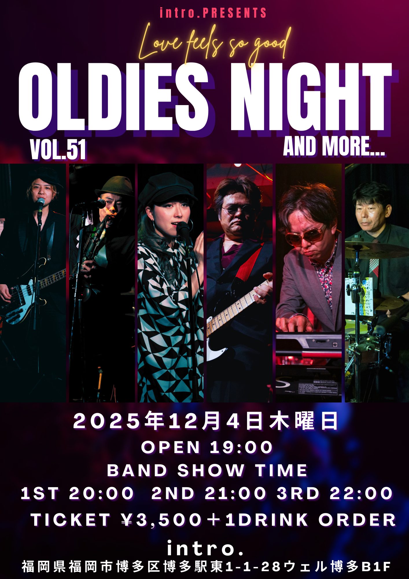 バンド演奏で懐かしのオールディーズミュージックを博多で